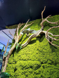 또 다른 벽면에는 양치식물과 나무, 새 모형이 함께 있어요.